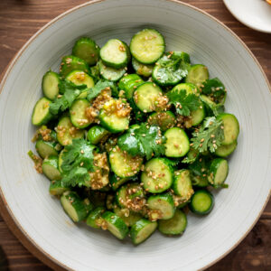 I recreated the Chongqing dipping sauce for a weeknight hotpot at home. I added in some chopped mini cucumbers to the leftover sauce and it was an instant hit with my family. The garlicky, sweet and salty, umami filled cucumber salad became a weekly banchan staple at our home and it’s become my daughters’ favorite cucumber salad. It’s so addicting that it will have you reaching for a second bowl of rice.